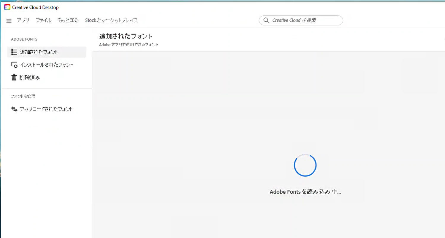 最新のCreativeCludDesktopの「追加されたフォント」が読み込み中のまま進行しません。