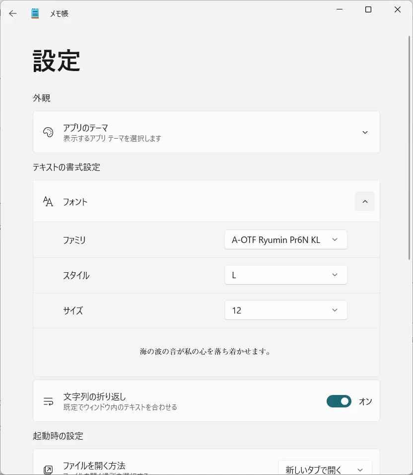 Windows的には指定すべきは 'A-OTF Ryumin Pr6N KL' のようで、メモ帳アプリの設定からフォントを選ぶ際にはこちらが表示されました。