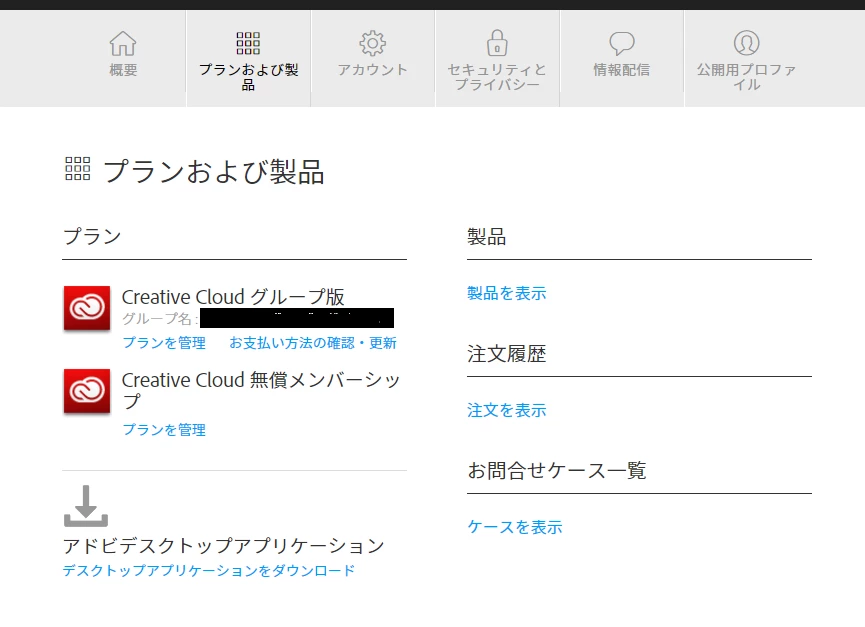 プランはCreative Cloud法人グループ版を使用しているのですが、Typekitのページに行くとポートフォリオプランにアップグレードするように出てきます。アカウントページでは、現在のプランは「無料」になっています。