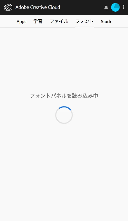 ・「環境にないフォント」をTypekitから同期可能と表示されており、「フォントを同期」ボタンを押すも、その後数分間、同期待機の丸いアイコンがずっと回り続けて止まり、何も解決せず・・