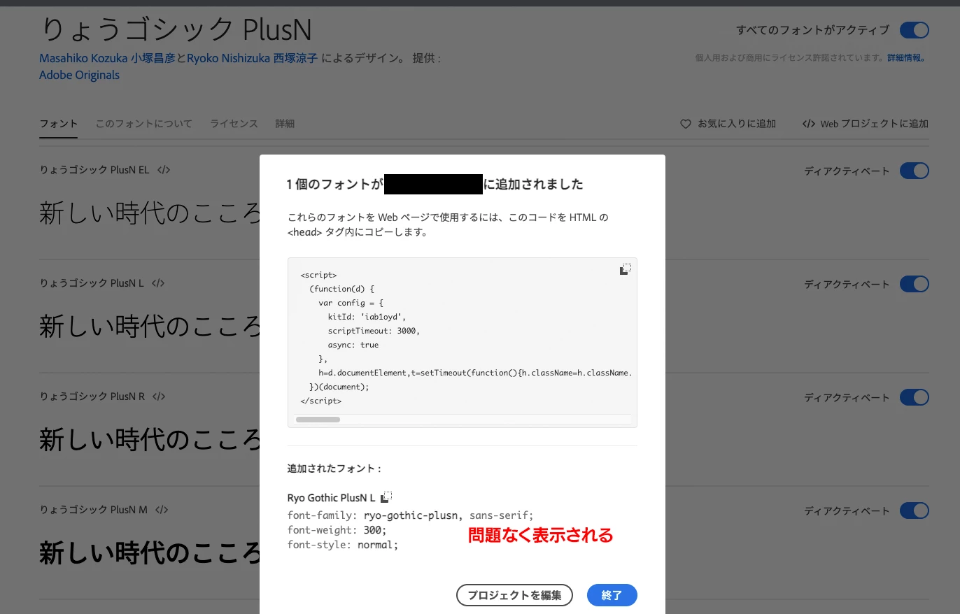 AdobeフォントをWEBプロジェクトに登録して、CSSを取得しようとすると