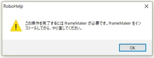 TCS2019をセットアップRobohelpがFrameMakerを見つけられない。