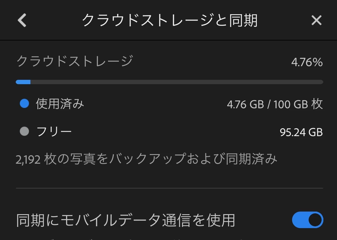…て事は、Lightroomの100GBの方が適用されてない?アプリで見ると100GBある表示になっている。
