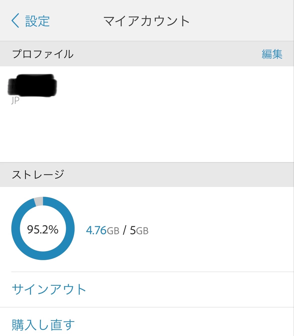 確認致しましたら、ストレージ容量が5GBしか無かったです。