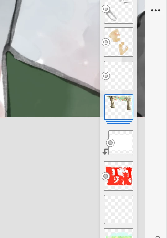 ちなみに、グループレイヤーの中を開いている状態から、元に戻るには、レイヤーバーの一番上にある「<」をタップすれば戻ります。