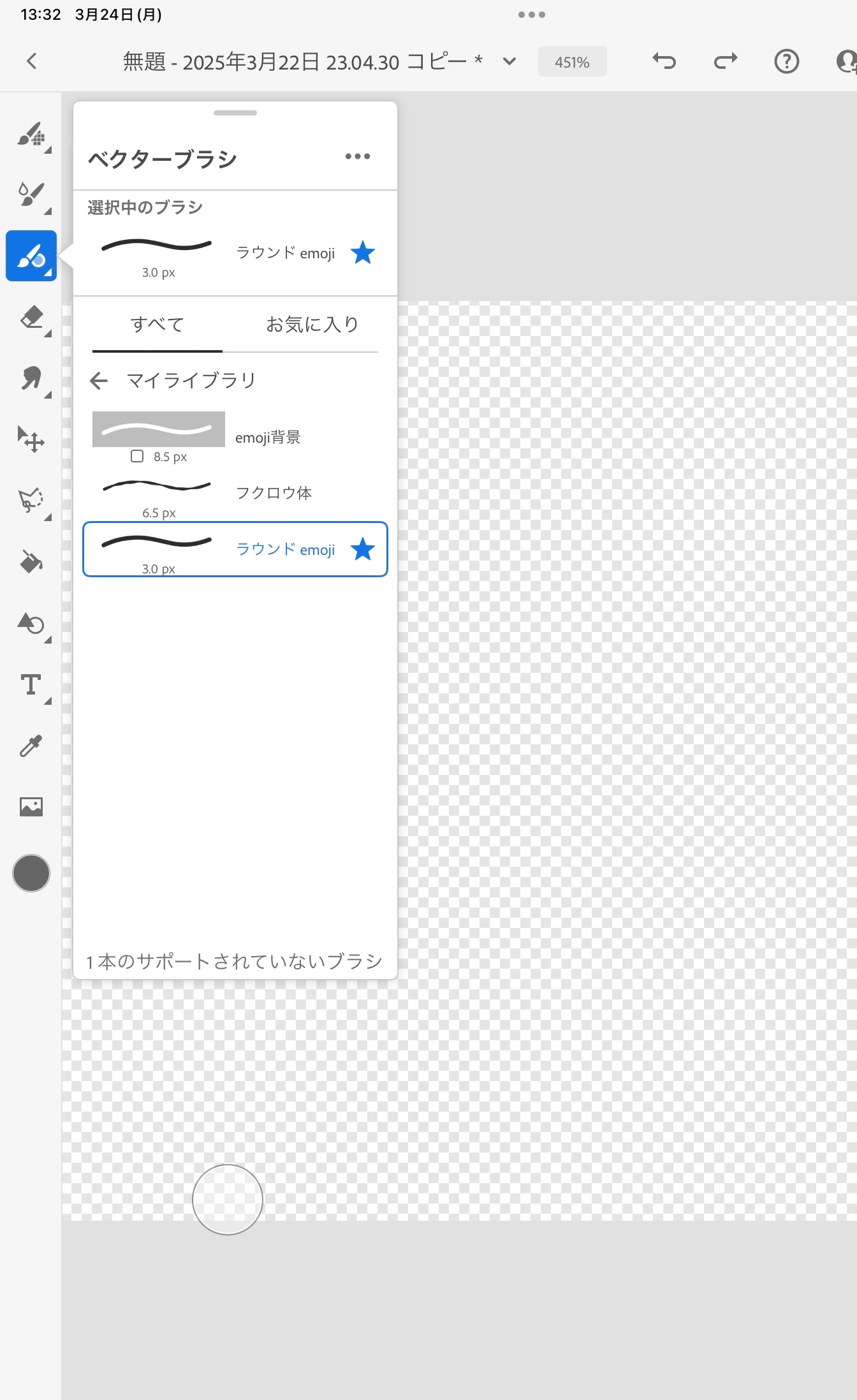 Frescoで保存したベクターブラシもcaptureから確認できませんでした。