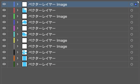 Frescoのベクターブラシで描いたイラストをaiで開くとベクターレイヤーimageという画像になる。