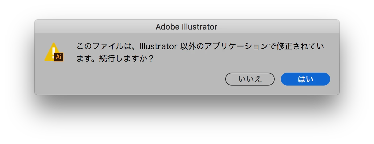 「このファイルはIllustrator以外の アプリケーションで修正されています。」