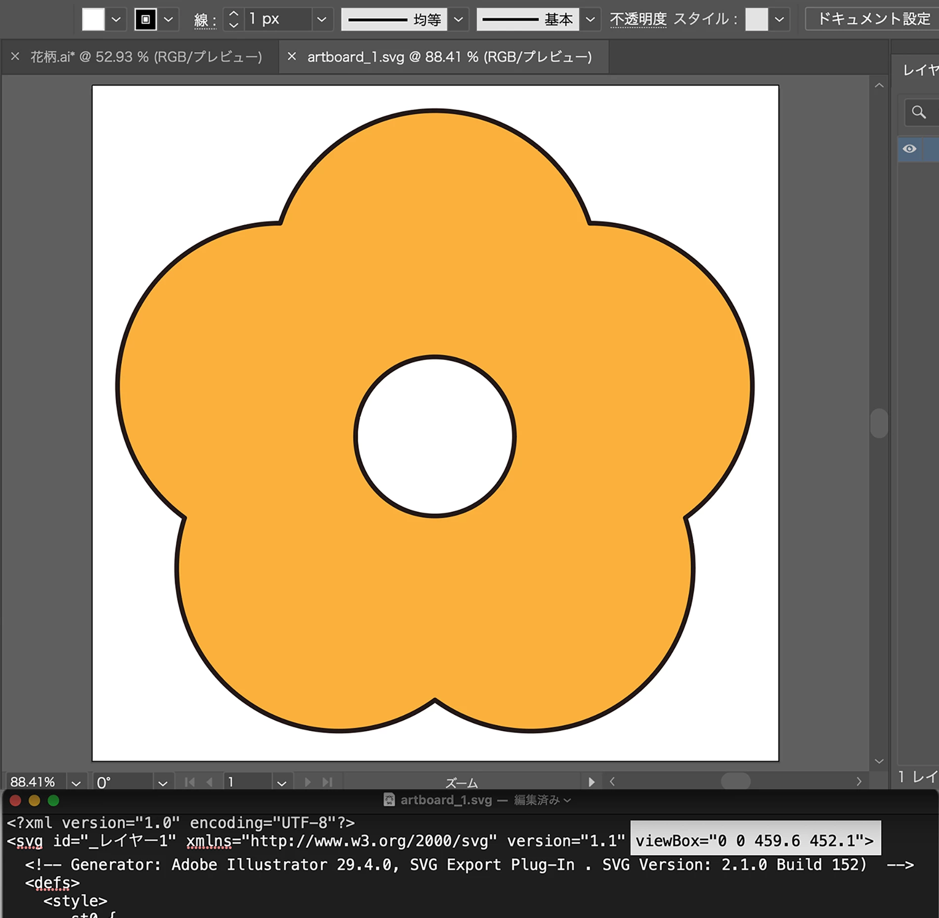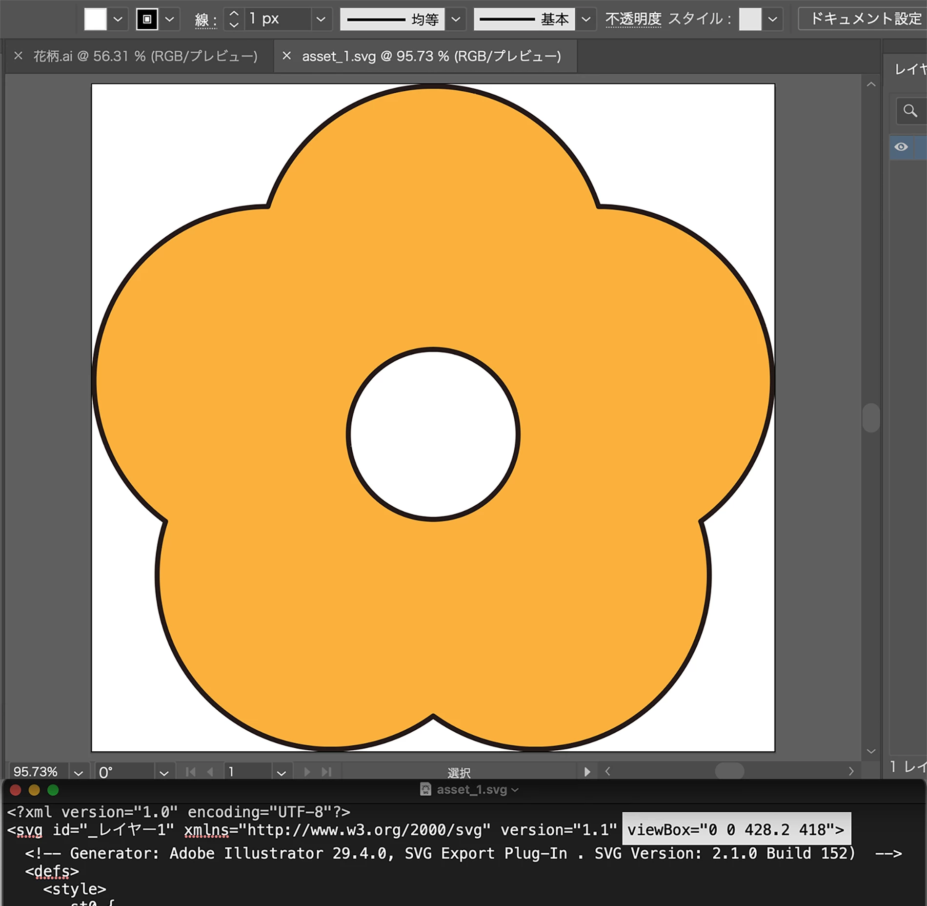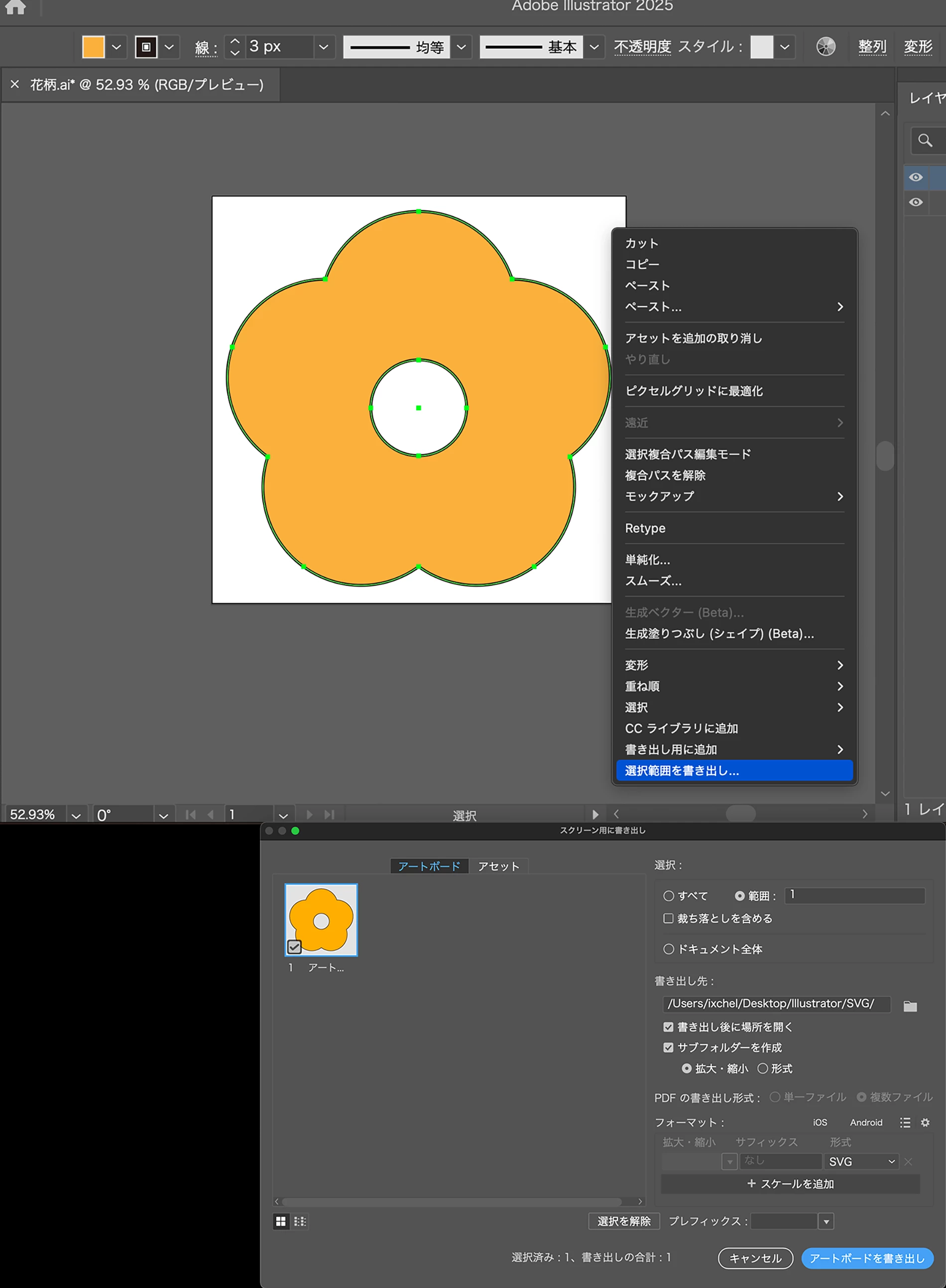 画像を見ると書き出しの形式は、svgですね。