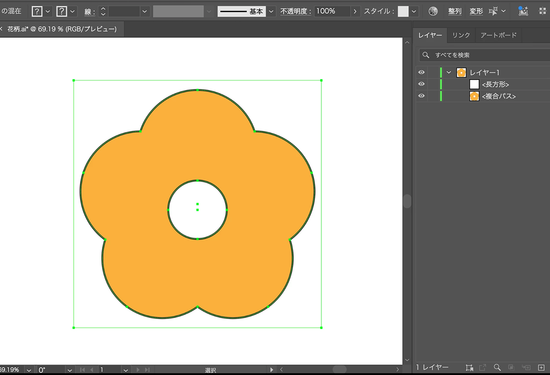 四角形の線・塗を無しにします。