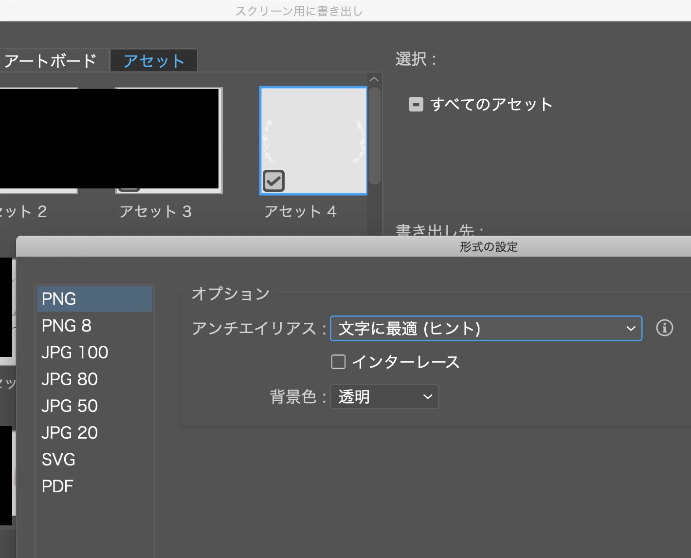 アセット書き出し時にpngが白背景になるので透過で出力するには