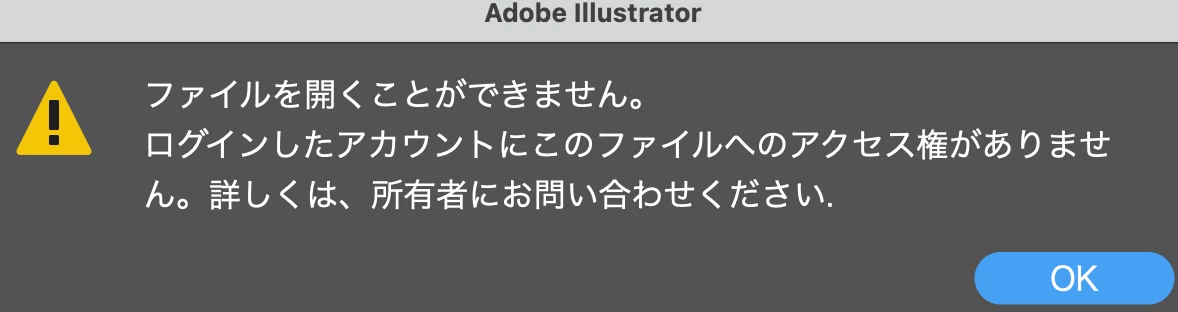 アドビクラウド内のファイルを開こうとすると、「ファイルを開くことができません。ログインしたアカウントにこのファイルのアクセス権がありません。詳しくは、所有者にお問い合わせください。」とでる。