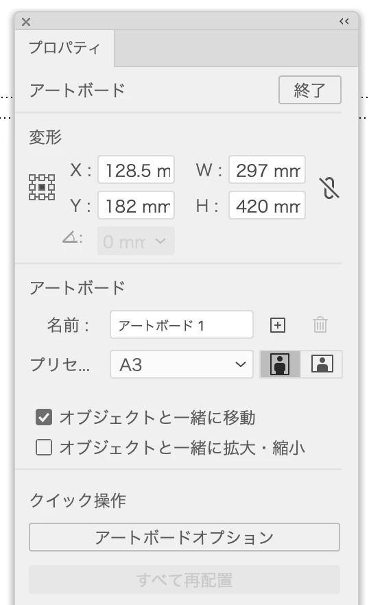 これがA3のアートボードであると、どこで確認できるのでしょうか