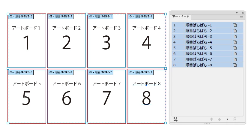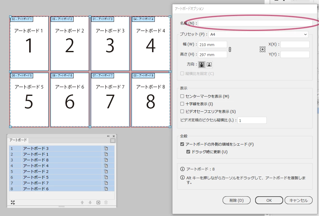 アートボードを+マークで追加する場合、1.2.3.4と順番に名前が付きますが、