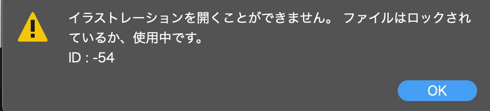 イラストレーションを開くことができません。ファイルはロックされているか、使用中です。 ID:-54