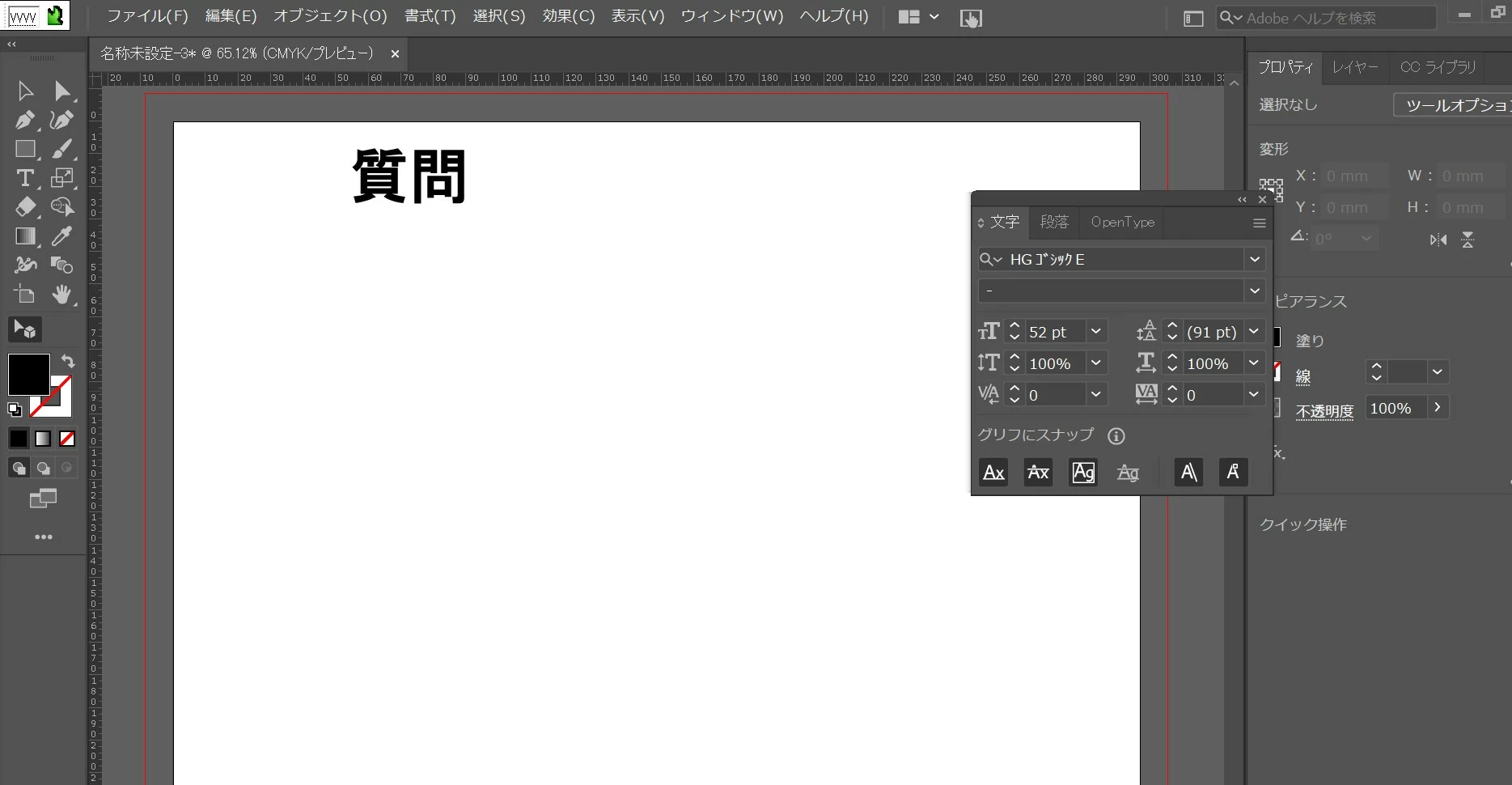 画像のように文字ツールで「質問」と打ったあとに