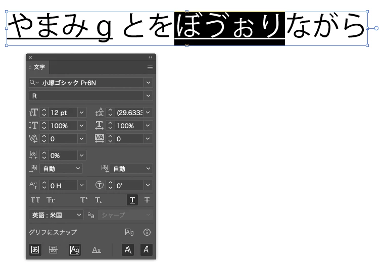 イラストレーターで文字に̠下線を引くと、破線になってしまう