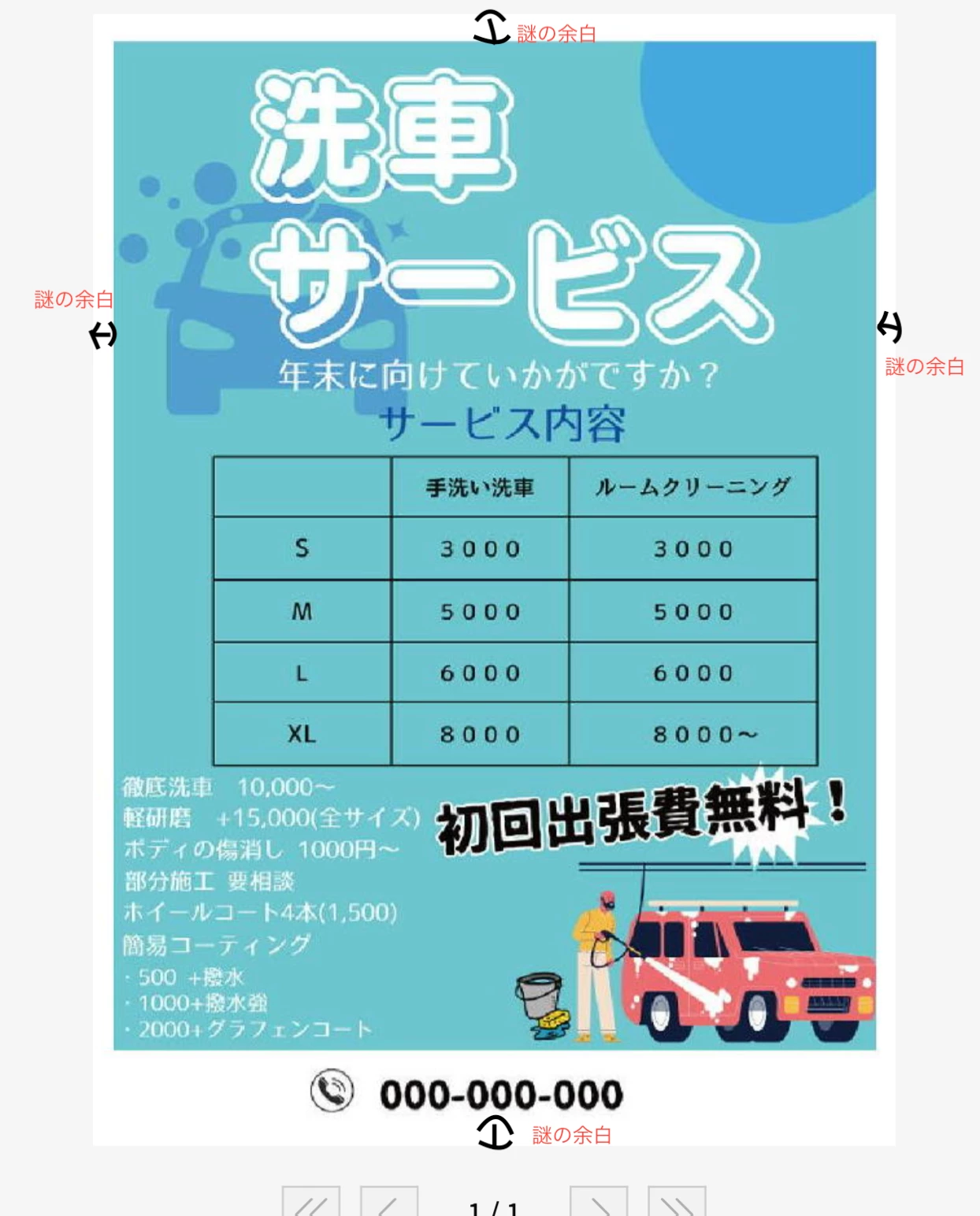 印刷すると画像の通り、謎の余白が発生してしまいます。