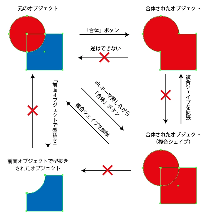 また、キーの併用なしで「合体」ボタンを押すと複合シェイプになるバージョンも存在しました。