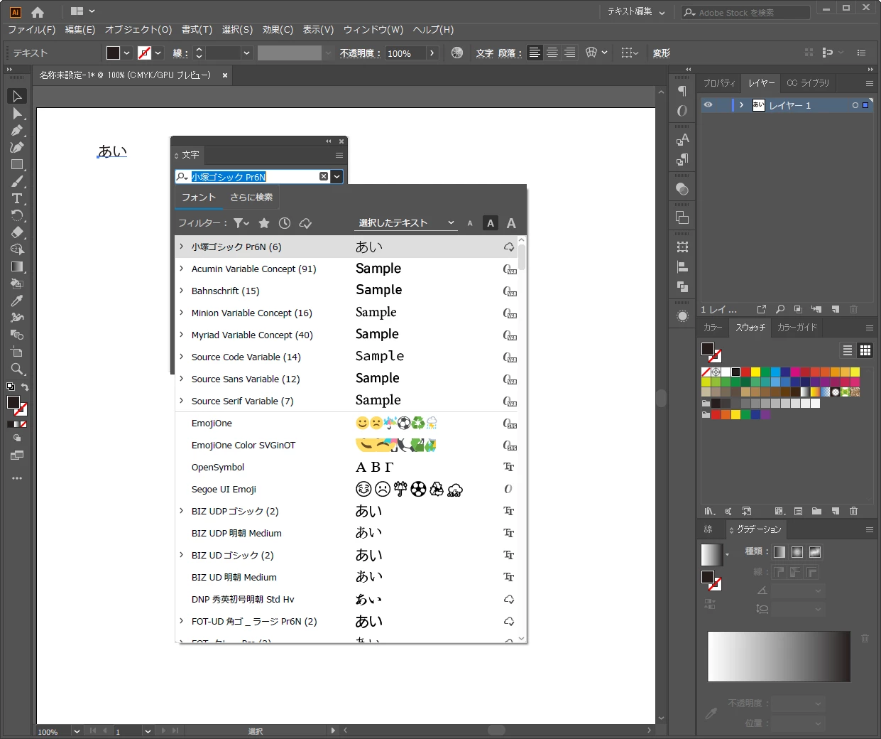 イラストレーター フォントのツールパネル