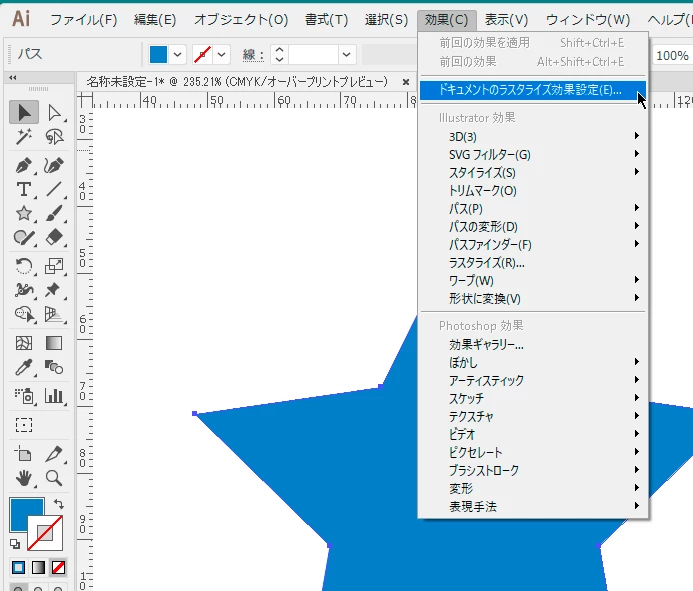 メニューバーの「効果」のところです。