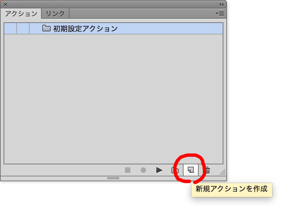 アクションに記録されたら、アクションパネルの下段の左端にある■を押すと、記録が終了します。