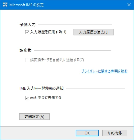 MS-IMEの設定を出して、詳細設定ボタンを押します。