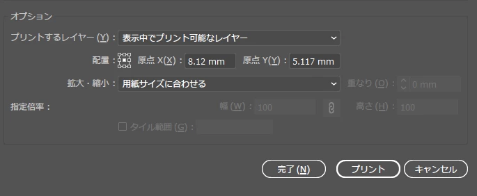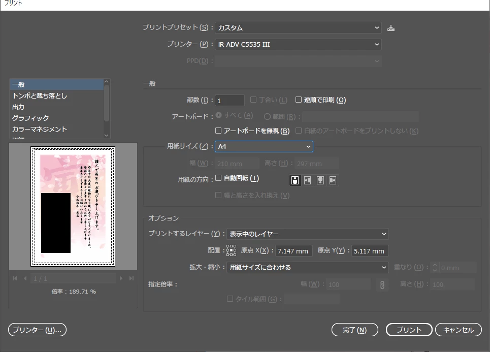 イラレのプリント画面で、教えていただいた通り試してみました。