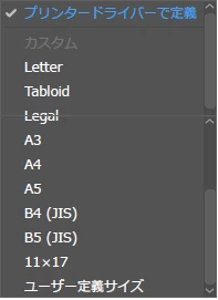 用紙サイズはプリンターのPPDファイルに記述されているものが表示されます。
