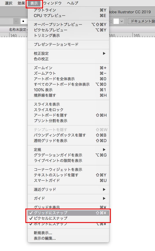 このチェックが入っていると、オブジェクトの移動や曲線を描くハンドルなどがグリッドラインやピクセルにくっつく(スナップする)ようになるため「動作がカクカクする」「引っかかるようにしか動かせない」などと感じることがあります。