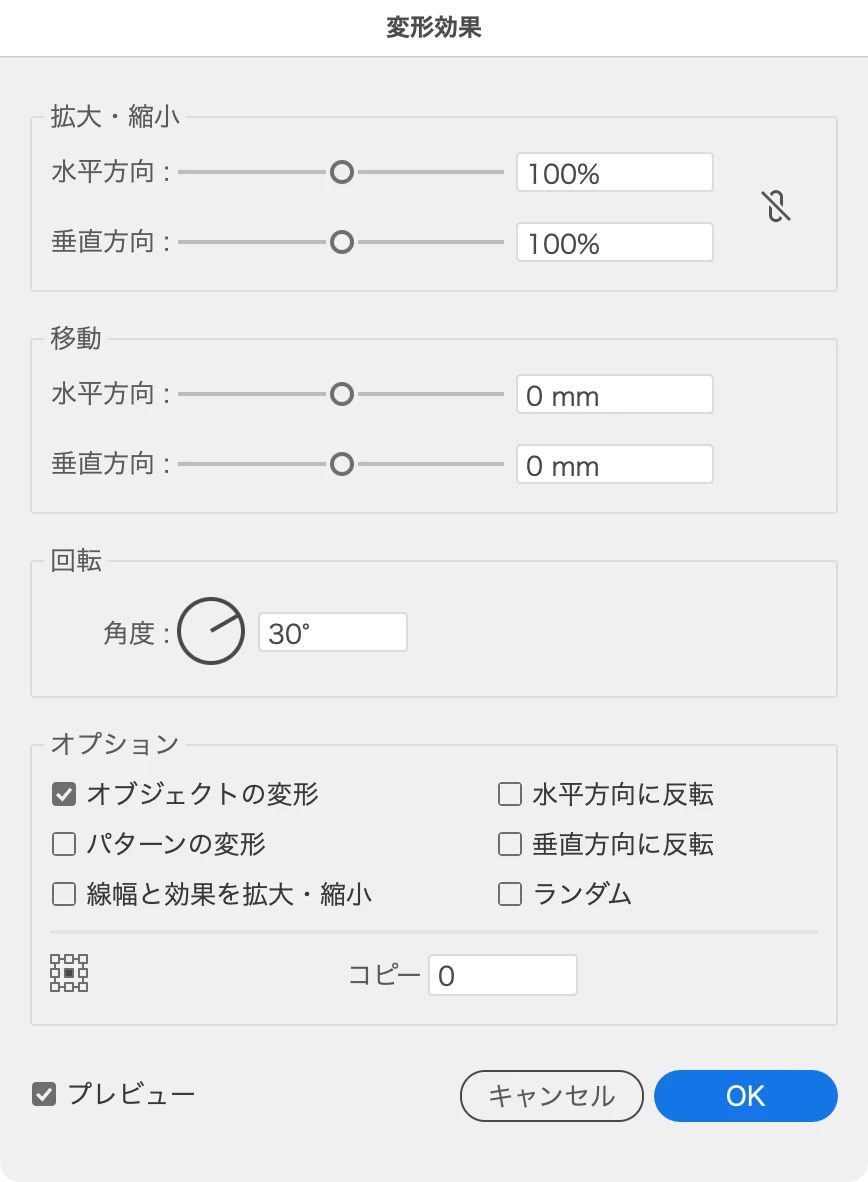 オブジェクト全体に「パスの変形」→「変形」を追加し、「回転」を設定してください。