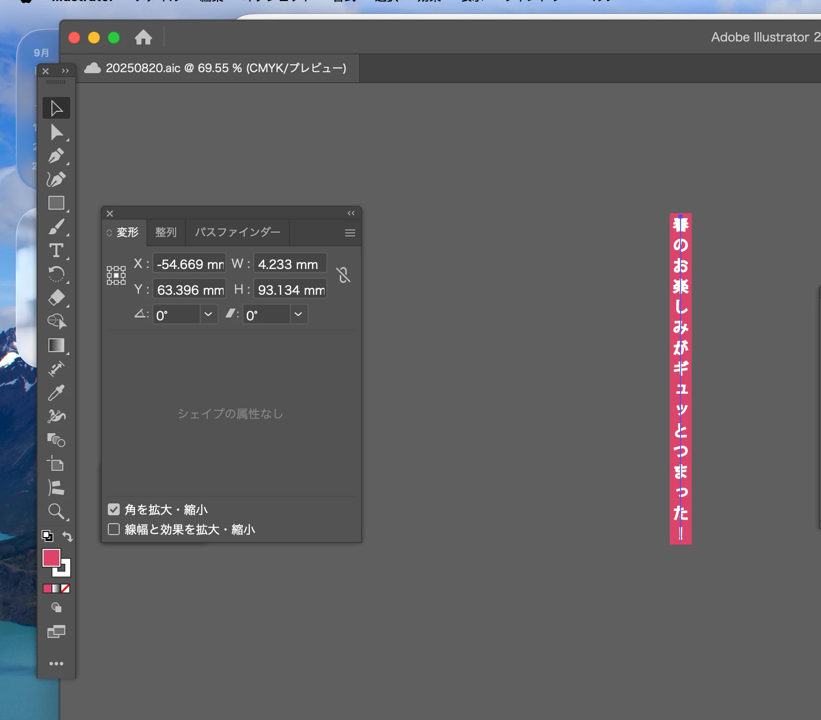 テキストにエフェクト「形状に変換」で長方形を適用し、テキストを打ち替えても自動的に長方形が付属するようにしました(図1 )。