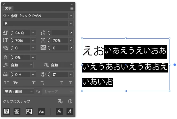 今回のケースで最も簡便な対象方法は、先頭行文字のパーセントを100%にして文字サイズの方を変えることでしょう。