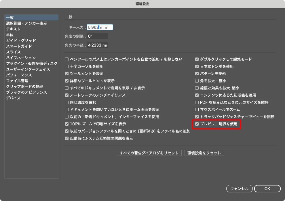 「プレビュー境界を~」