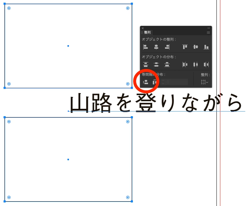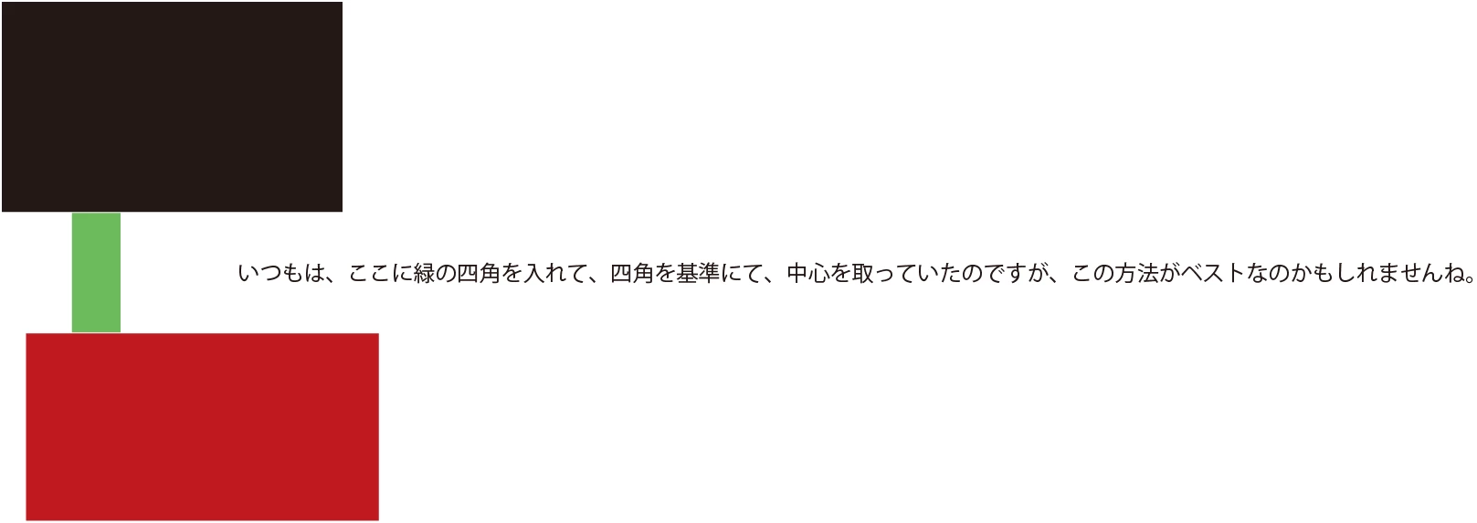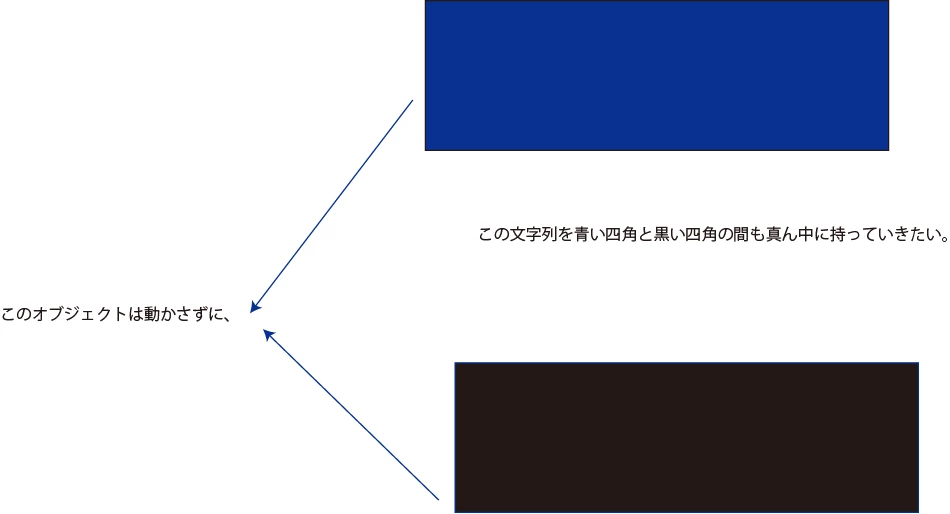 オブジェクトオブジェクトの間の文字列を真ん中に持っていきたいのですが、上下のオブジェクトは動かさないで真ん中の文字列だけを動かして真ん中に持っていく方法ってございませんか?