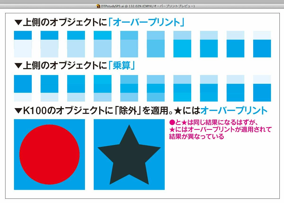 オーバープリントを乗算の違いがわかりません。