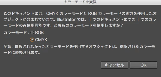Illustratorで、添付画像の「カラーモードを変換」でpng画像をCMYKに変換した時では