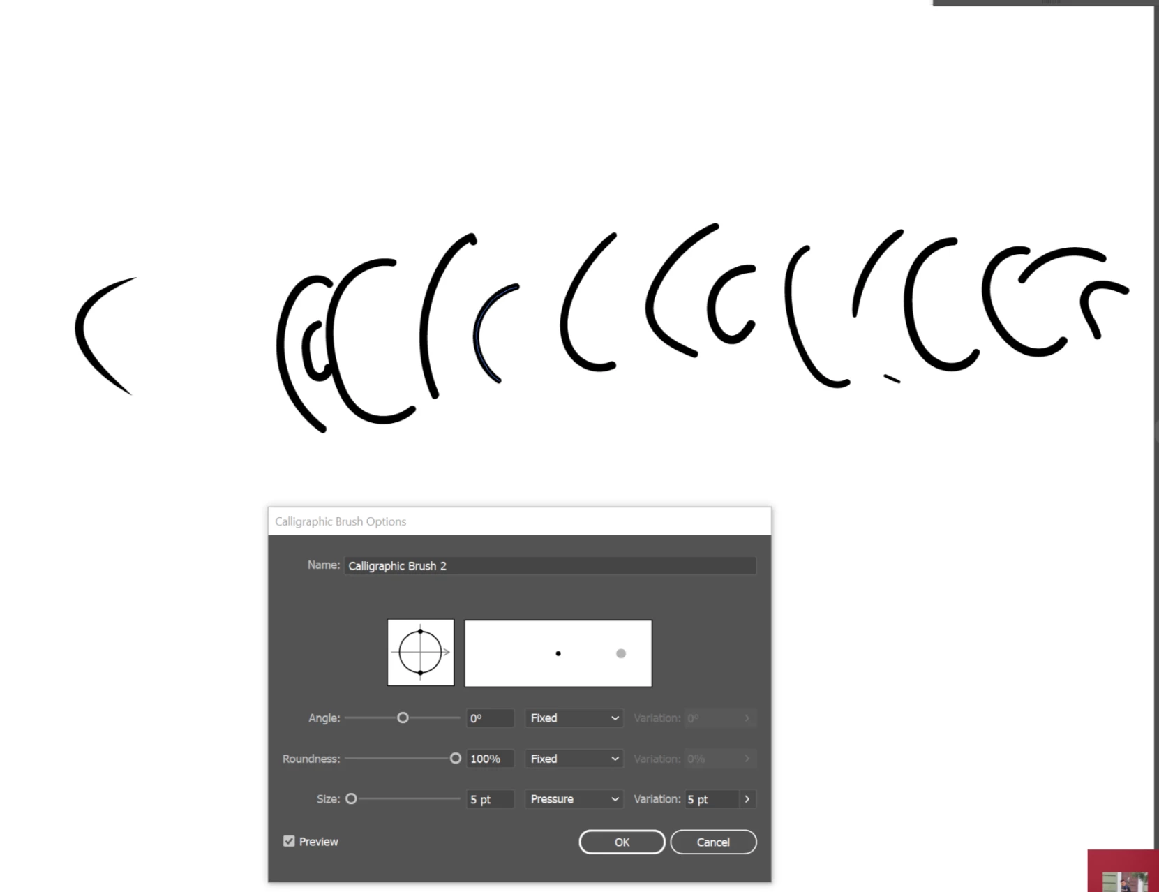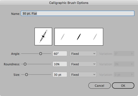 カリグラフィブラシを使ってペンで書いたときに、線の端が丸くなる