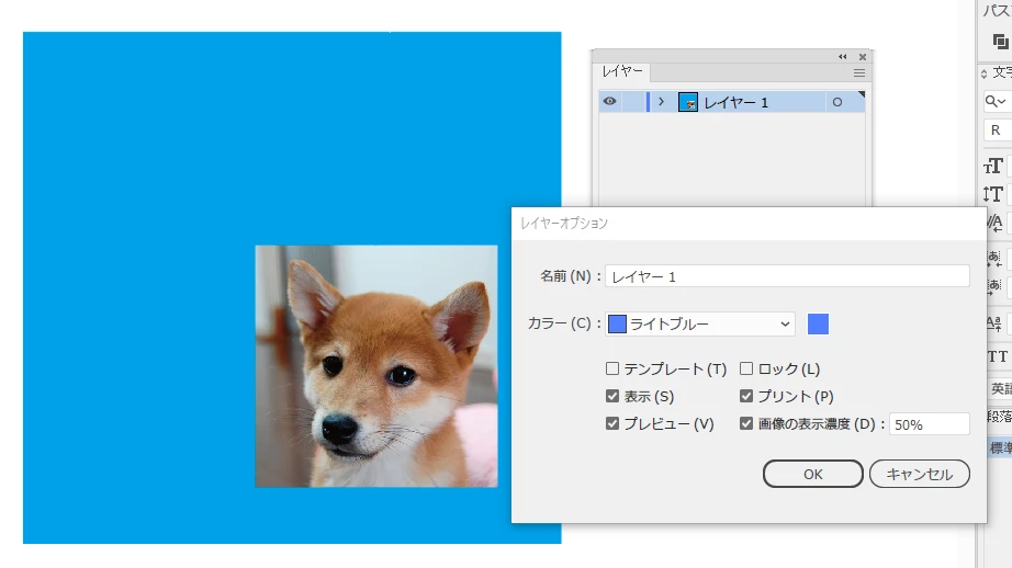 ④ レイヤーがテンプレートレイヤーになり、ついでにロックされ、画像が薄く表示されます。