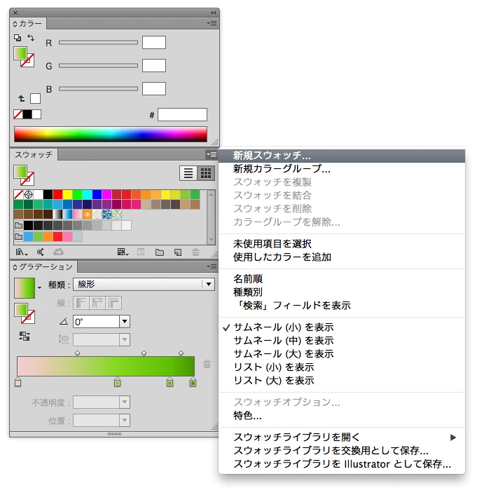 illustratorでグラデーションを作り、その上にテキストをのせて、クリッピングマスクをかけると