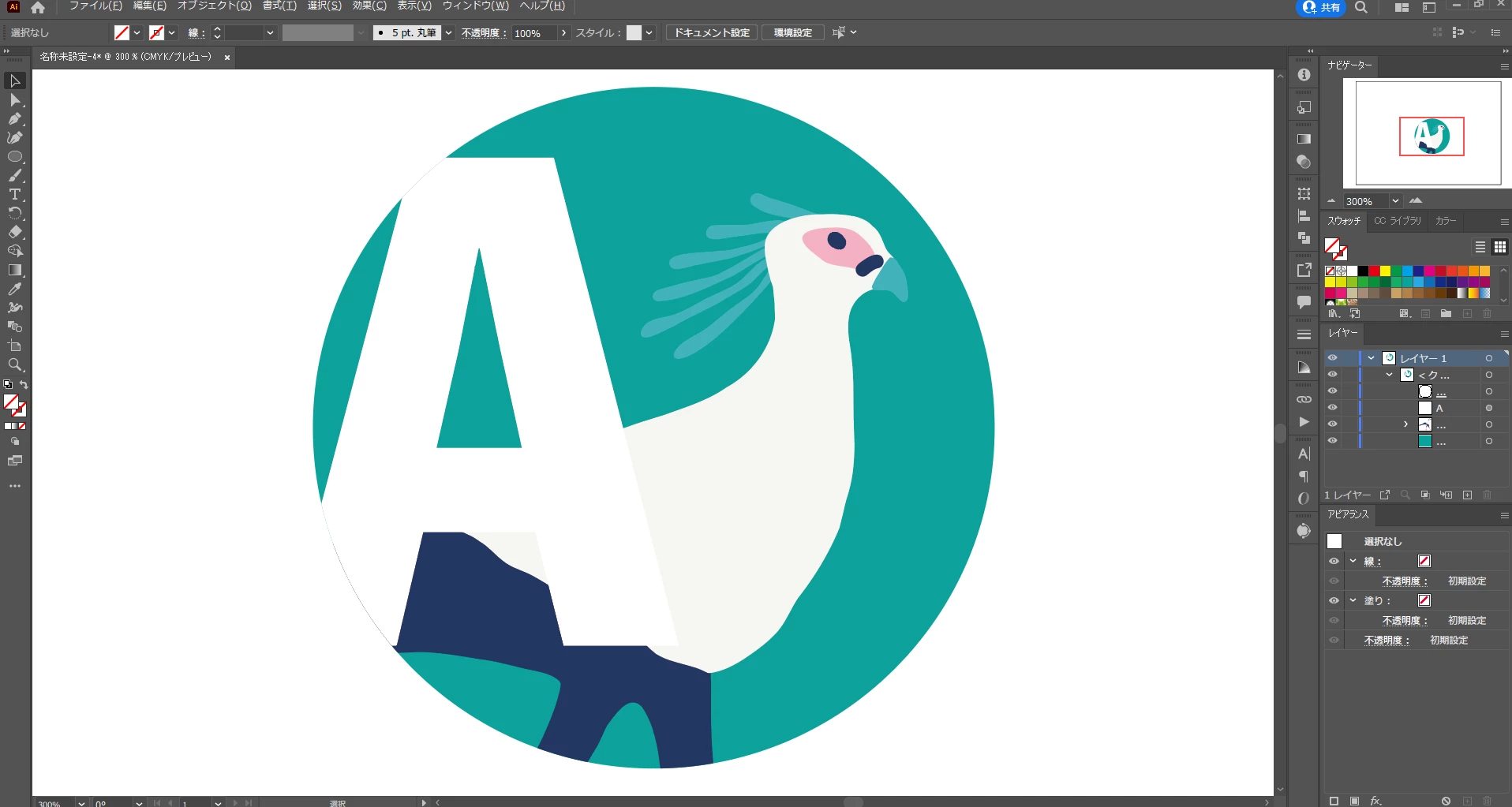 マスクに使用したオブジェクトは塗りと線はなしになっています。
