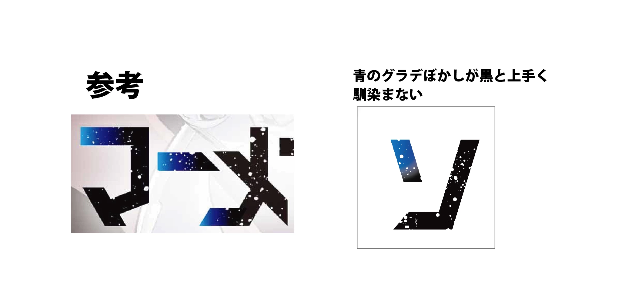 参考のものみたいに黒の部分が綺麗に馴染みません。