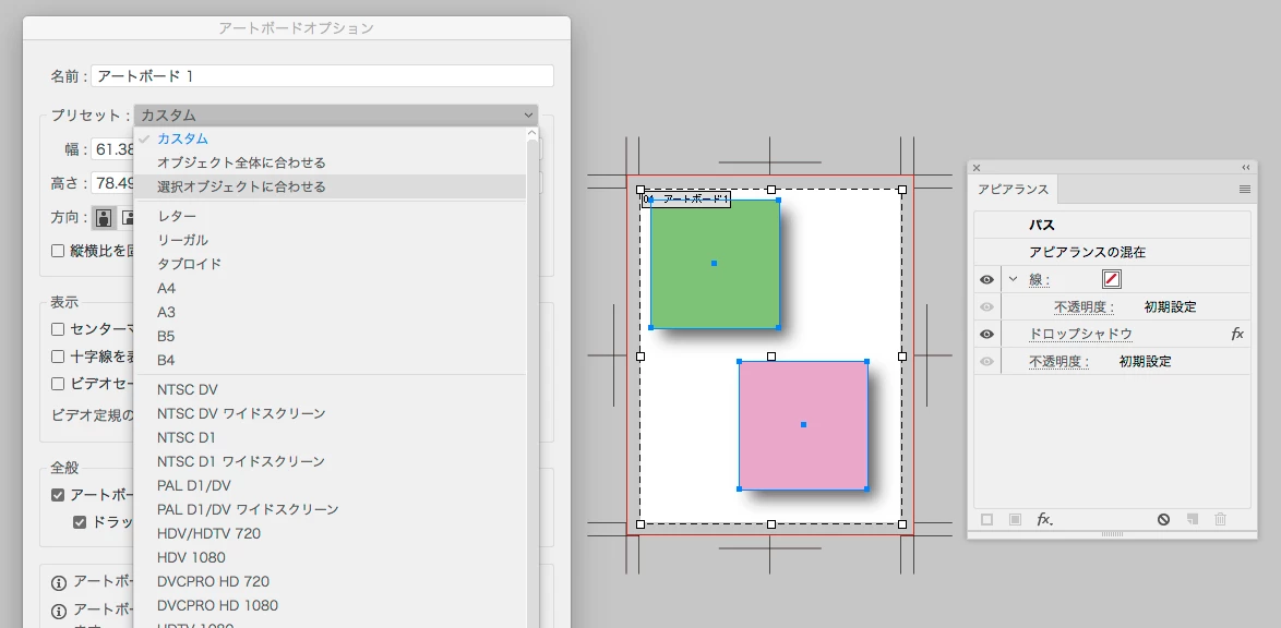 グループに適用したアピアランスがアートボードサイズに反映されない問題