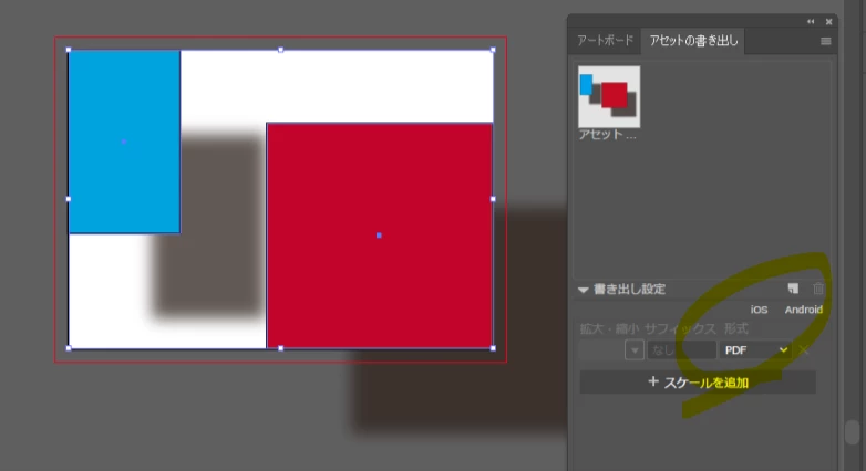 ↑ 個々のオブジェクトにドロップシャドウを適用したものは、正常にアートボードサイズに反映されています
