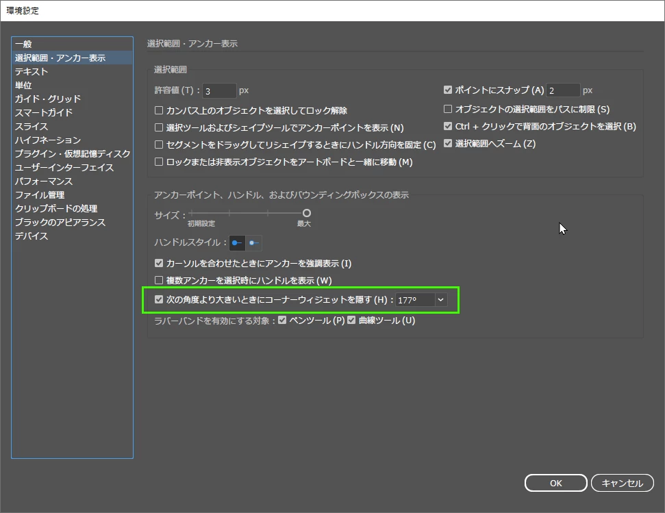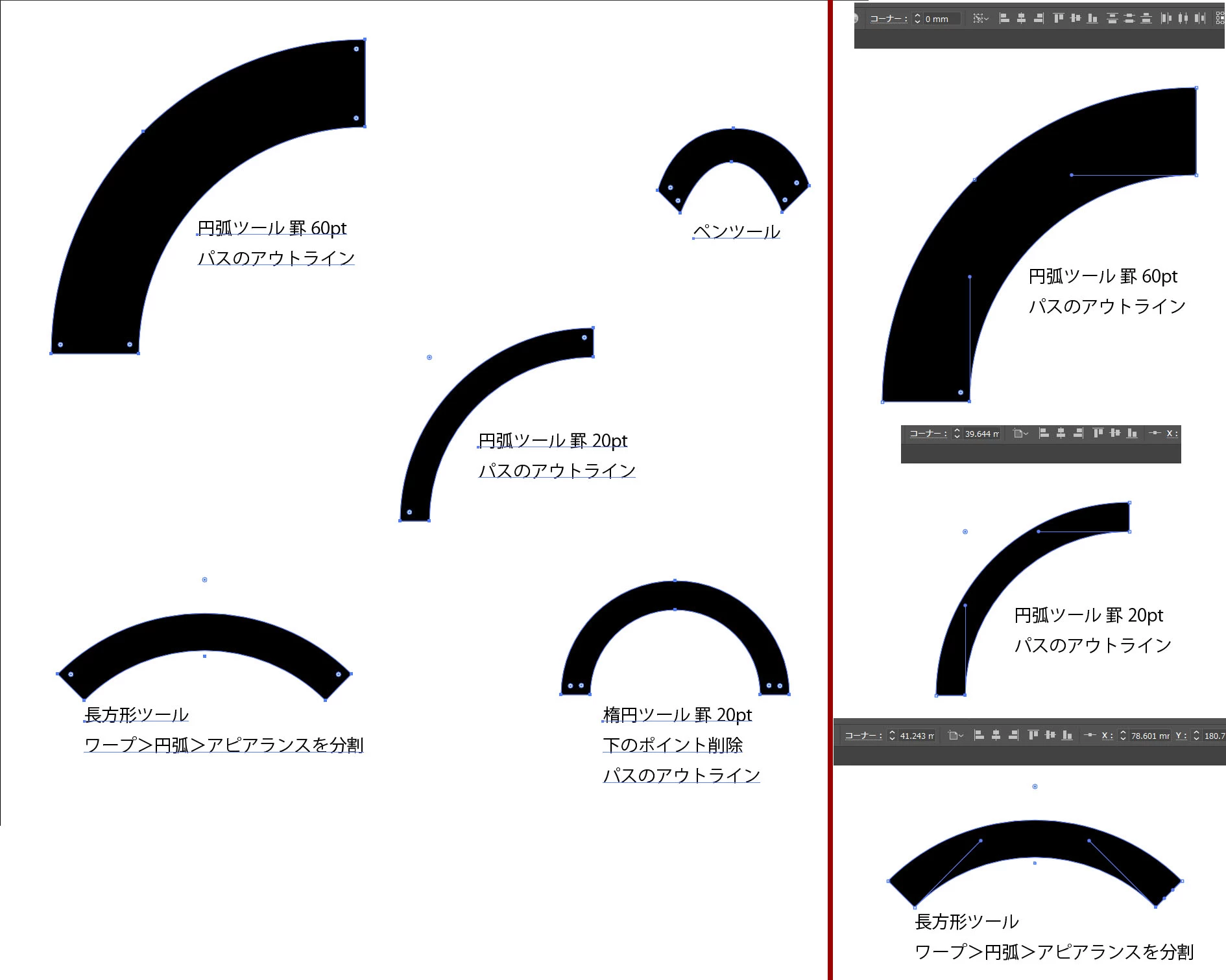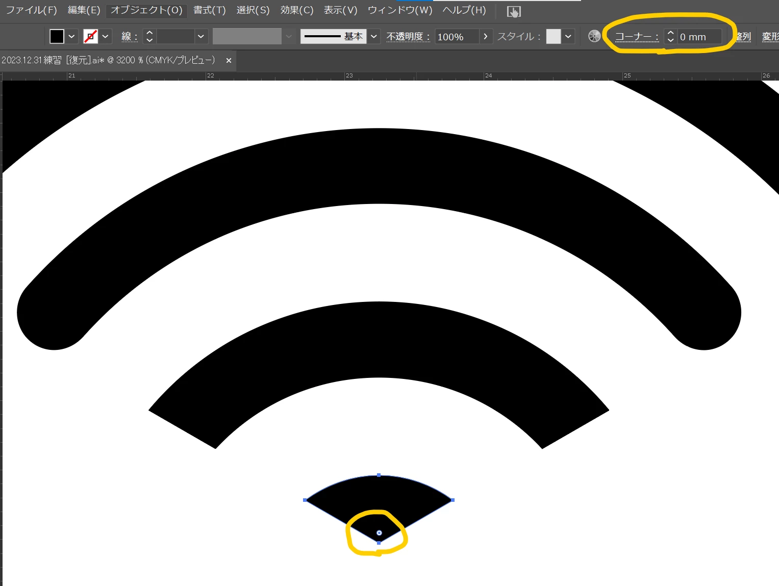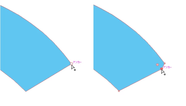 以前も同じ手順で同じ図形を作成した時は両方コーナーが出てきました。