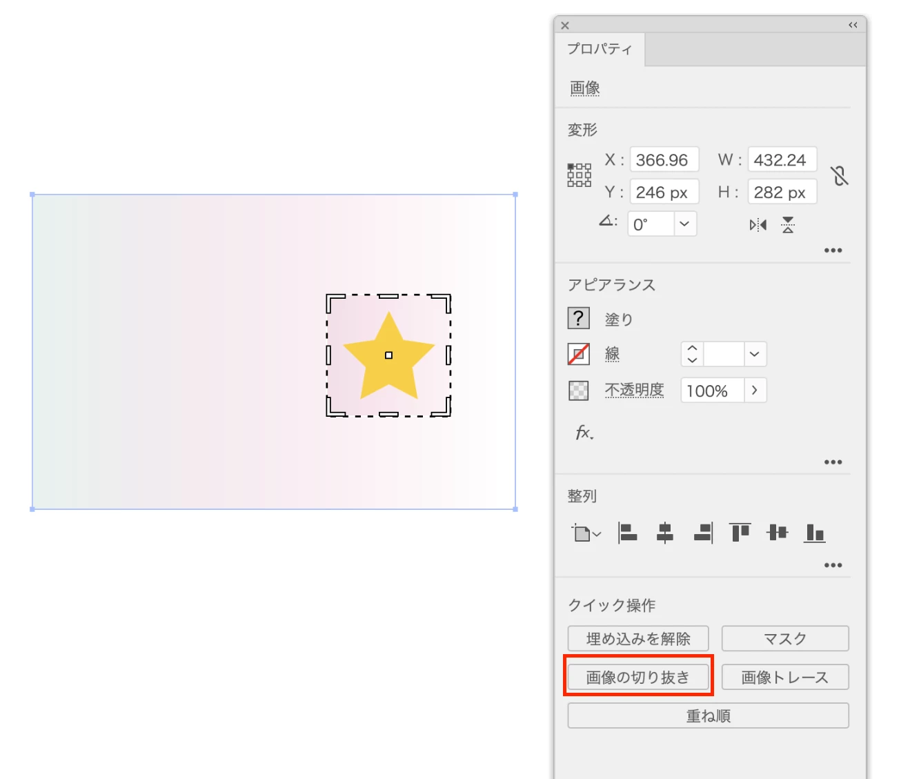 画像の一部をシンボルに登録する場合は、画像を選択したときにプロパティパネルの下の方に表示される「画像の切り抜き」ボタンで必要な箇所だけ切り抜きます。これでシンボルに登録することは可能です。が、