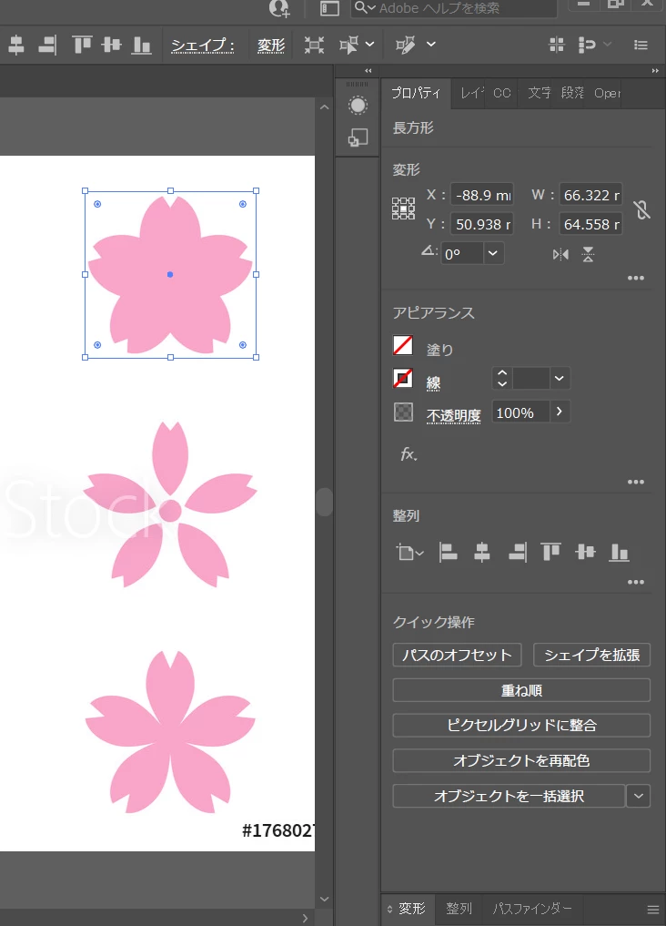 @Ay5CBD さんはIllustratorを勉強中の方だとお見受けしますので、桜の花のパーツはAdobeストックからではなく、頑張ってIllustratorで作成しましょう!