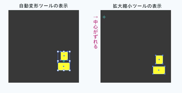 オブジェクトに拡大縮小ツールを使うと、中心がずれるようになりました。