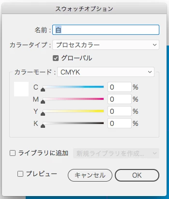 スウォッチからグローバル登録した色のC0M0Y0K0には対応していません。