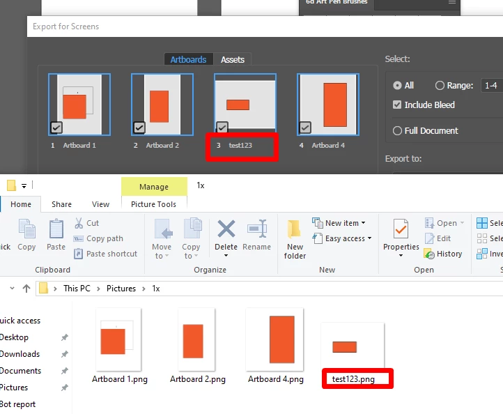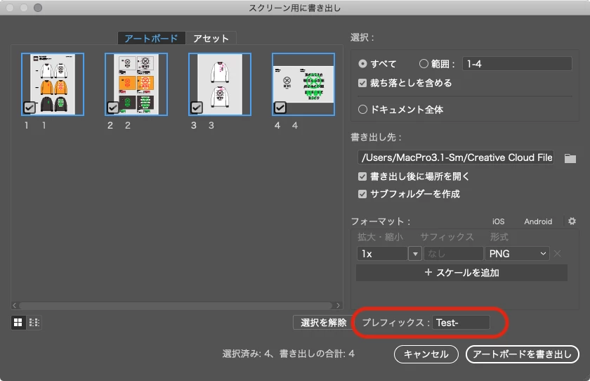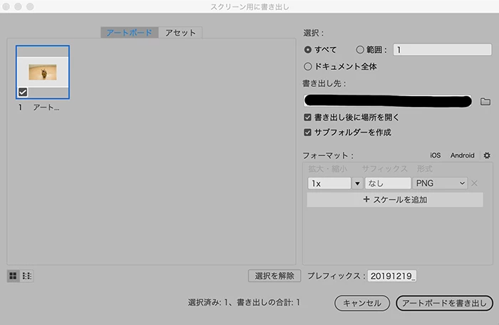 スクリーン用に書き出しを行うと、指定したファイル名に追加で「アートボード 」という文字が必ず入ってしまいます。